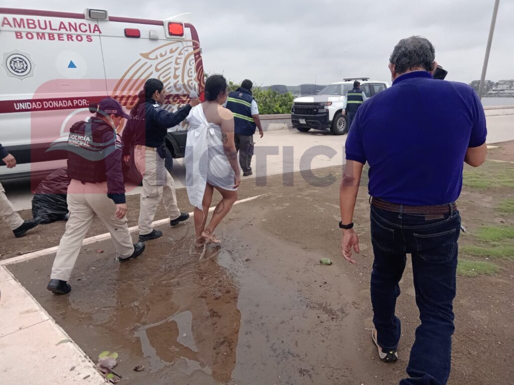 Tras persuadir a la mujer a que saliera del agua, se tornó agresiva con los socorrista, pero finalmente con la ayuda de la policía lograron subirla a una ambulancia.