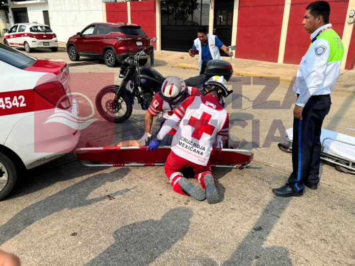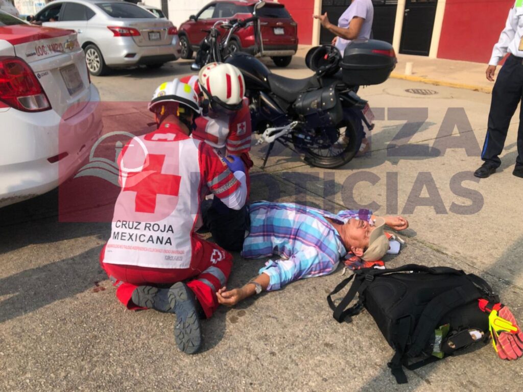 Maniobra de la que no se percató el motociclista, quien se estampó y terminó tendido en el pavimento, por lo que tuvo que ser auxiliadora por personal de la Cruz Roja, quienes lo canalizaron al hospital para su atención medica.