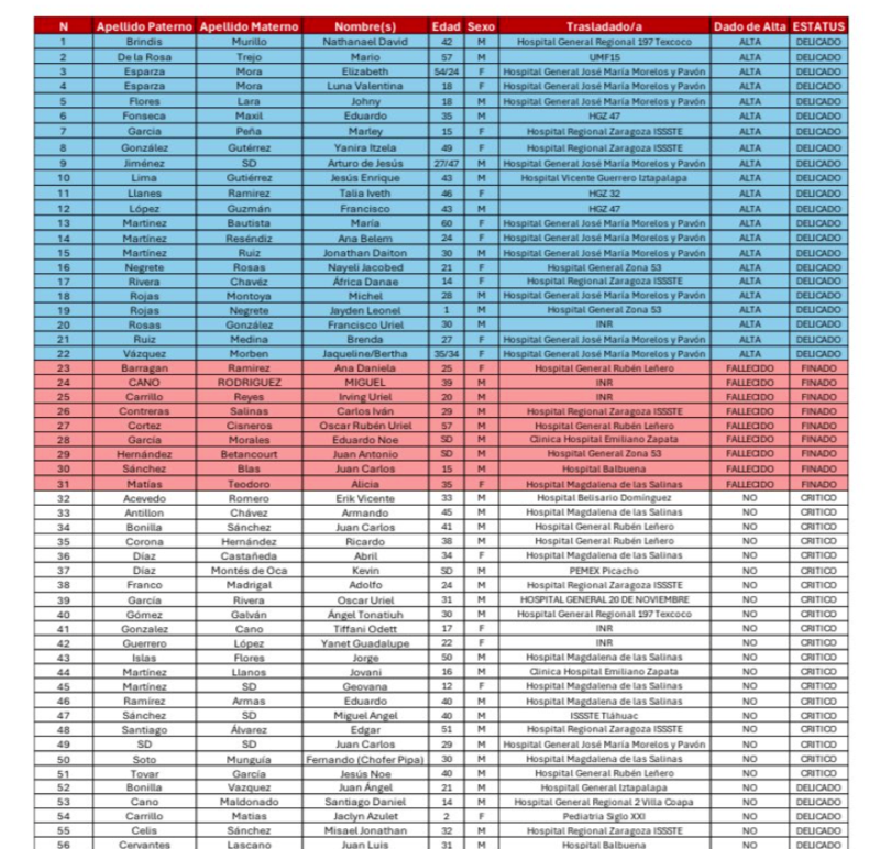 La Secretaría de Salud de la Ciudad de México reconoce que, en la información difundida el día de ayer sobre las personas fallecidas tras el incidente, se cometió un error al incluir el nombre de la señora Alicia Matías Teodoro.
