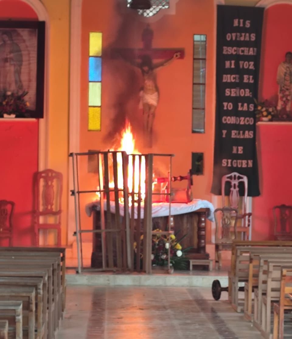 Un hombre ingresó a la iglesia «Nuestra Señora de Guadalupe» de la localidad de Tilapan en San Andrés Tuxtla, para prender fuego al interior.