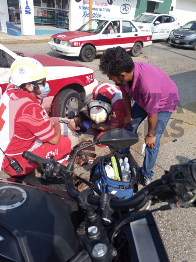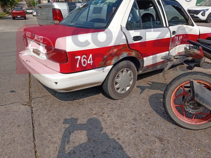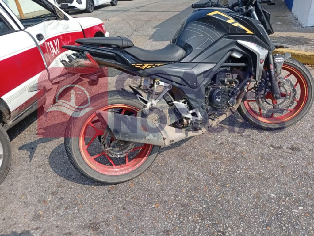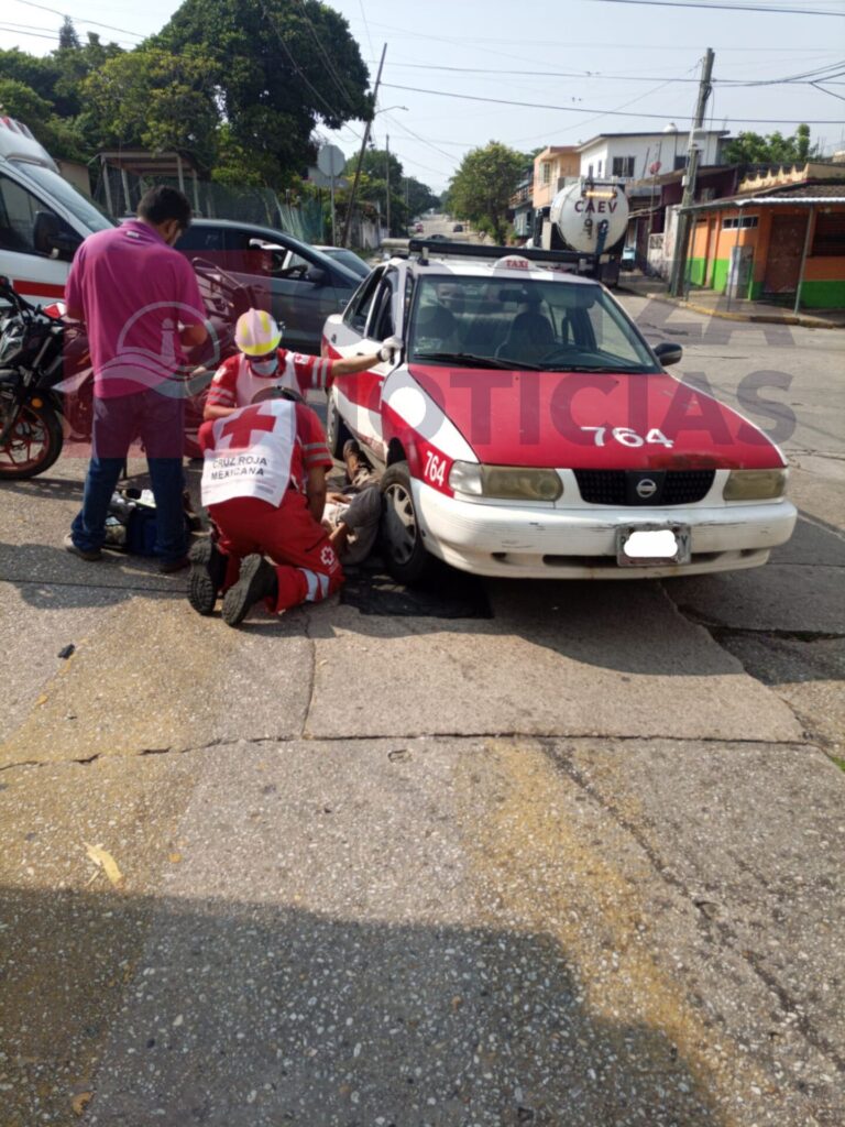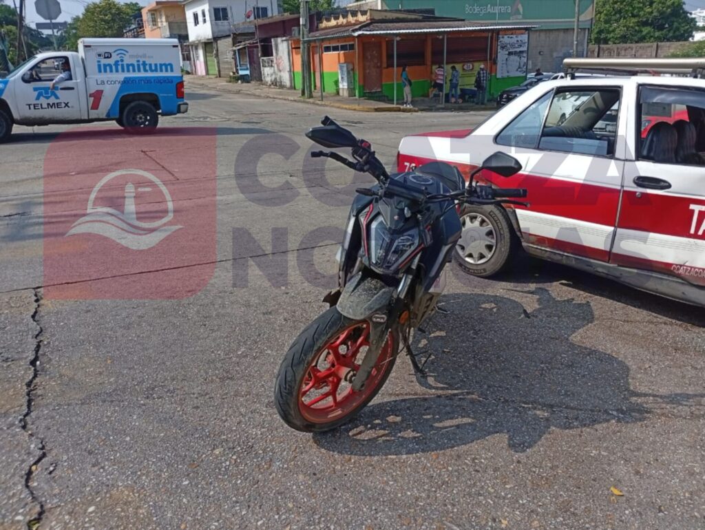 Con golpes en diversas partes del cuerpo resultó un motociclista que estampó su vehículo contra un taxi, en calles de la colonia Benito Juárez de Coatzacoalcos.