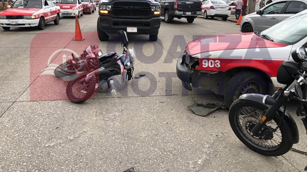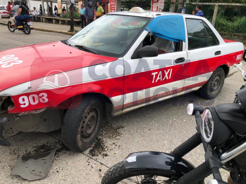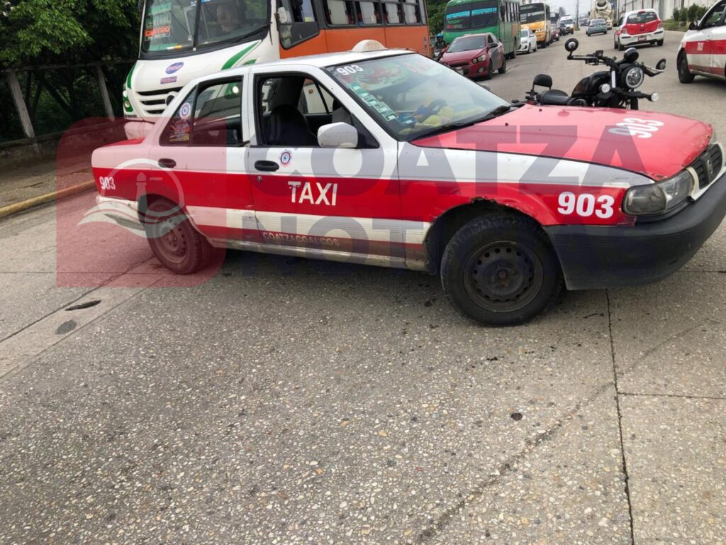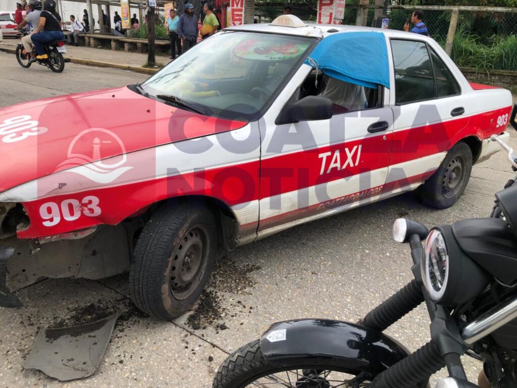InicioCoatzacoalcosTaxi derriba a motociclista frente a la central camionera