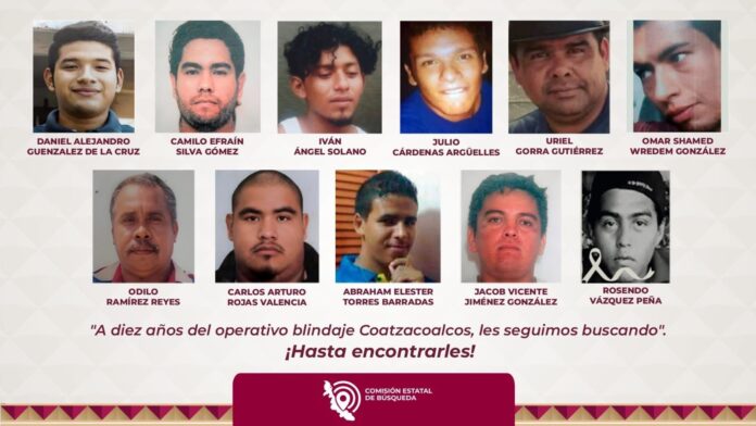 Se cumplen diez años de la desaparición forzada de diez jóvenes en el marco del llamado Operativo Blindaje Coatzacoalcos, implementado por fuerzas estatales y federales en esta ciudad. A una década de los hechos, familiares, colectivos y organizaciones de derechos humanos continúan exigiendo justicia, verdad y garantías de no repetición.