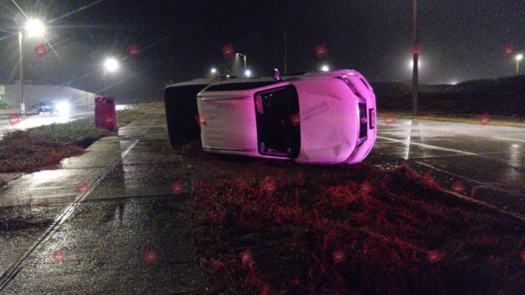 El percance ocurrió cuando el vehículo transitaba de poniente a oriente sobre el Malecón Costero; metros antes de llegar a la calle 1 de Mayo, el conductor o conductora perdió el control del volante, abandonó la superficie de rodamiento, subió al camellón central y terminó volcada sobre uno de sus costados.